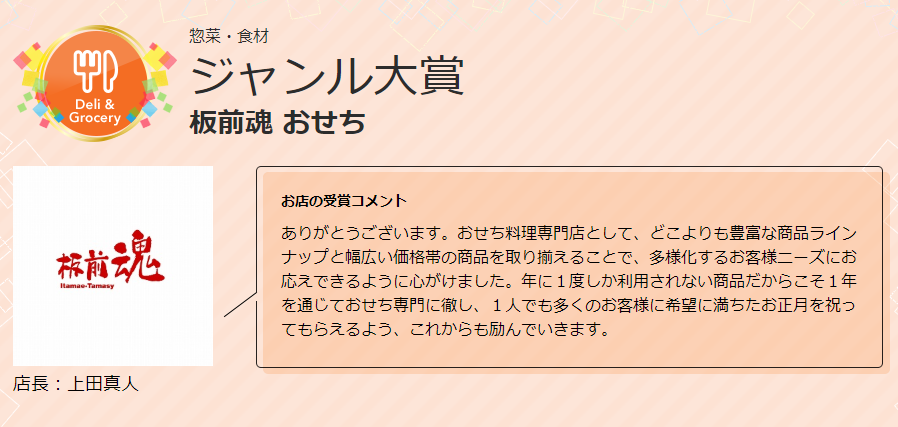 楽天市場、惣菜・食材ジャンル大賞受賞