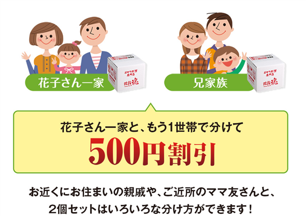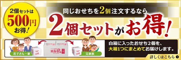 同じおせちを2個セットで注文すると、配送をまとめる代わりに500円引きになります。