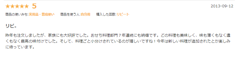 去年、こちらの商品と別のショップさんのおせちを購入しました。