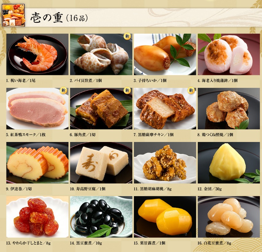 「博多久松」のおせち料理の16種類のラインナップ一覧