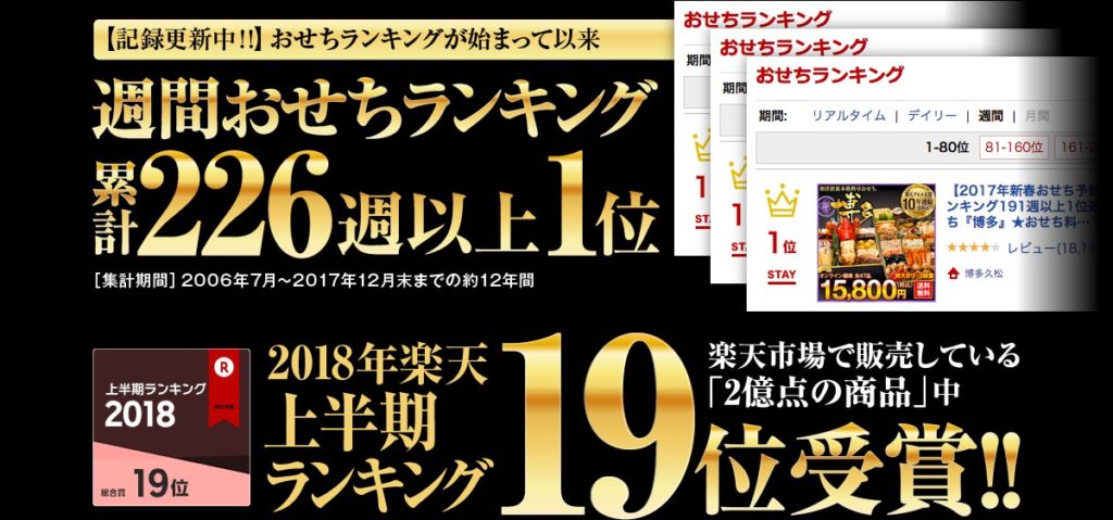 第1位の「博多」がショップページでも一番大きく扱われていて、お店のオススメのおせちになっています。