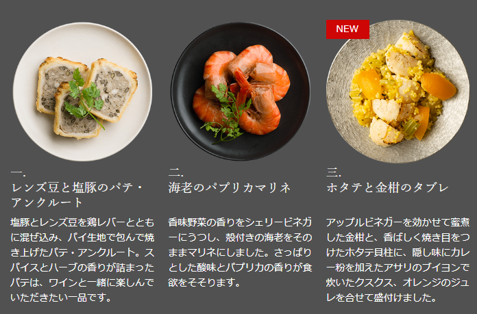 例えば、「塩豚のパテ・アンクルート」とか、聞いたことないような料理ですが写真と説明があるので分かりやすい。