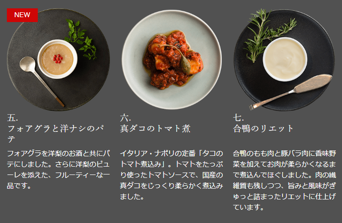 個人的にこれを食べたいと思った物は、「5、フォアグラと洋梨のパテ」です。