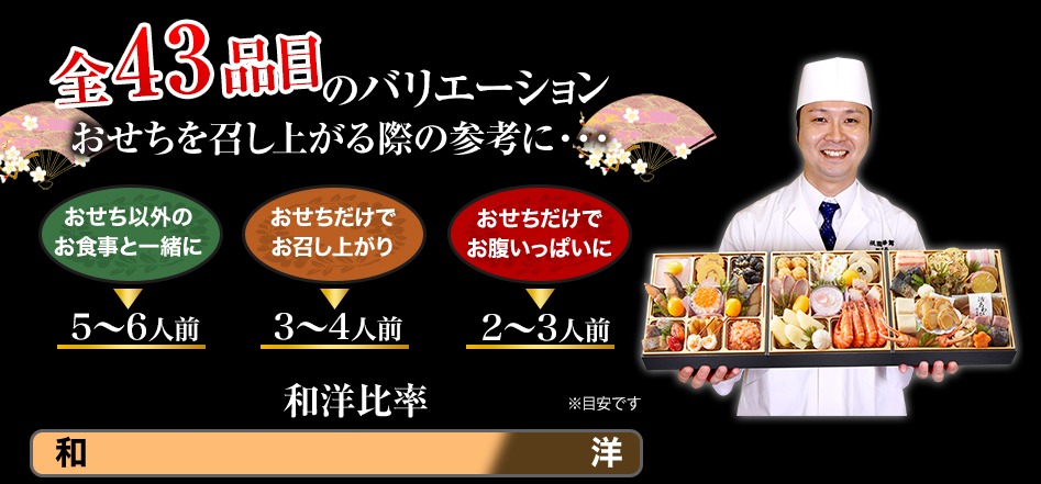 「京都祇園 「華舞」監修おせち 福の舞」の品数は41品