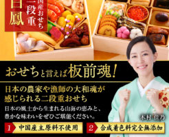 中国産不使用おせち2021。使用食材はすべて純国産!「板前魂のおせち」の早割価格を調査。 更新日:2020年11月15日 公開日:2017年12月1日 老舗・銘店 食材は全て純国産!おせち 食材が全て純国産のおせちがこの2種類です。 2人前21品目の二段重おせち「白鳳」 3人前30品目の三段重おせち「大和」 この記事では純国産「白鳳」と純国産「大和」の2つのおせちについて、購入サイ […] 続きを読む